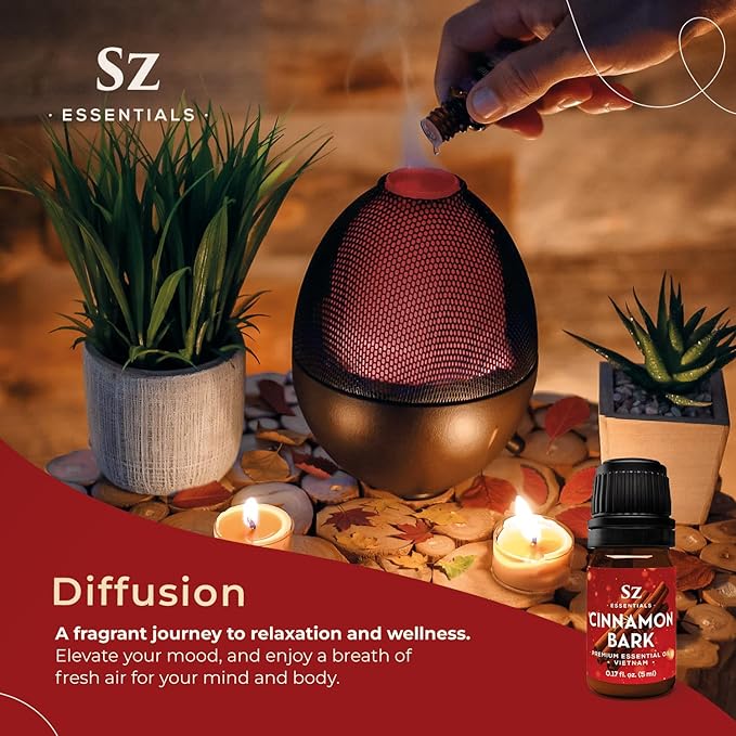 Cinnamon Bark Essential Oil –Vietnamese– 100% Pure & Undiluted – Warm, Rich Aroma with Sweet Undertones – Perfect for Diffuser, Aromatherapy & DIY Blends – Therapeutic Grade, Vegan (5mL)