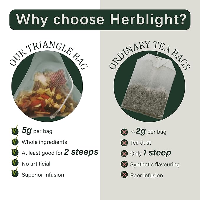 - Whole Herbs, Not Dust: Superior Extraction: Our heat-resistant sachets preserve whole organic herbs—not tea dust—for a richer, clearer, and more aromatic brew. Enjoy the full benefits of ashwagandha, lavender, and chamomile in every cup.