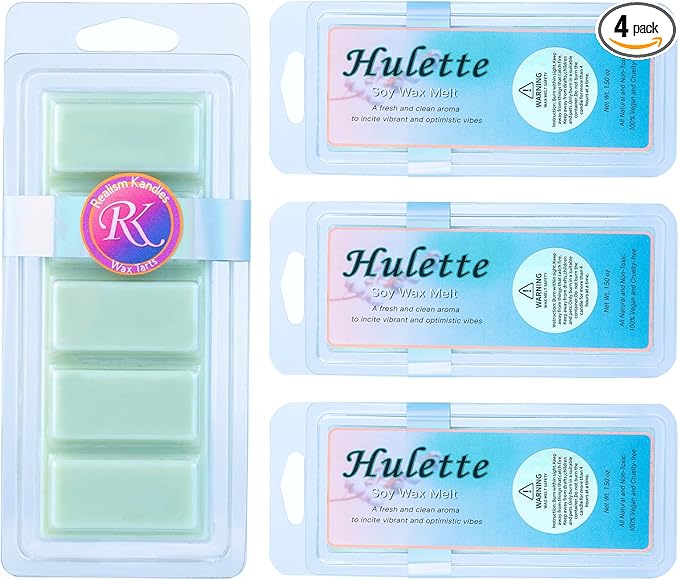 Hulette Cotton & Sea Salt Soy Wax Melts 5 Count, Green Chromotherapy Rectangles, Premium Handcrafted Aromatherapy Fragrance, Long-Lasting Non-Toxic Scented Wax, 4 Pack